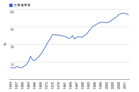 本題に入りましょう。昔はめったに行かれないということは、珍しいのだからとても価値があったのです。でも今は誰でも行ける時代です。希望の大学でなかったとしても、子供の数が減って、大学が余り、全入学時代になったのです。